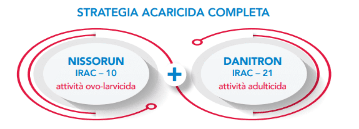 Danitron® risulta efficace per contatto e ingestione contro tutte le forme mobili degli acari Tetranichidi a dosi comprese su agrumi fra 100 e 125 ml/hl, corrispondenti a una dose massima per ettaro di due litri da applicarsi una volta per stagione nel rispetto del suo intervallo di sicurezza, pari questo a 14 giorni. Nissorun® è invece applicabile fino a un massimo di tre volte l’anno alla dose di 25-50 g/hl, sospendendo parimenti i trattamenti a 14 giorni dalla raccolta.