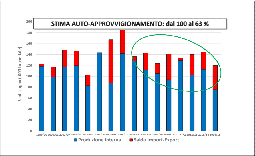 • una forte oscillazione produttiva e necessità di import a causa della crescente domanda (la sola Ferrero nel periodo 2007/2015 ha aumentato la domanda di circa 25.000 Tonnelate di nocciole sgusciate);