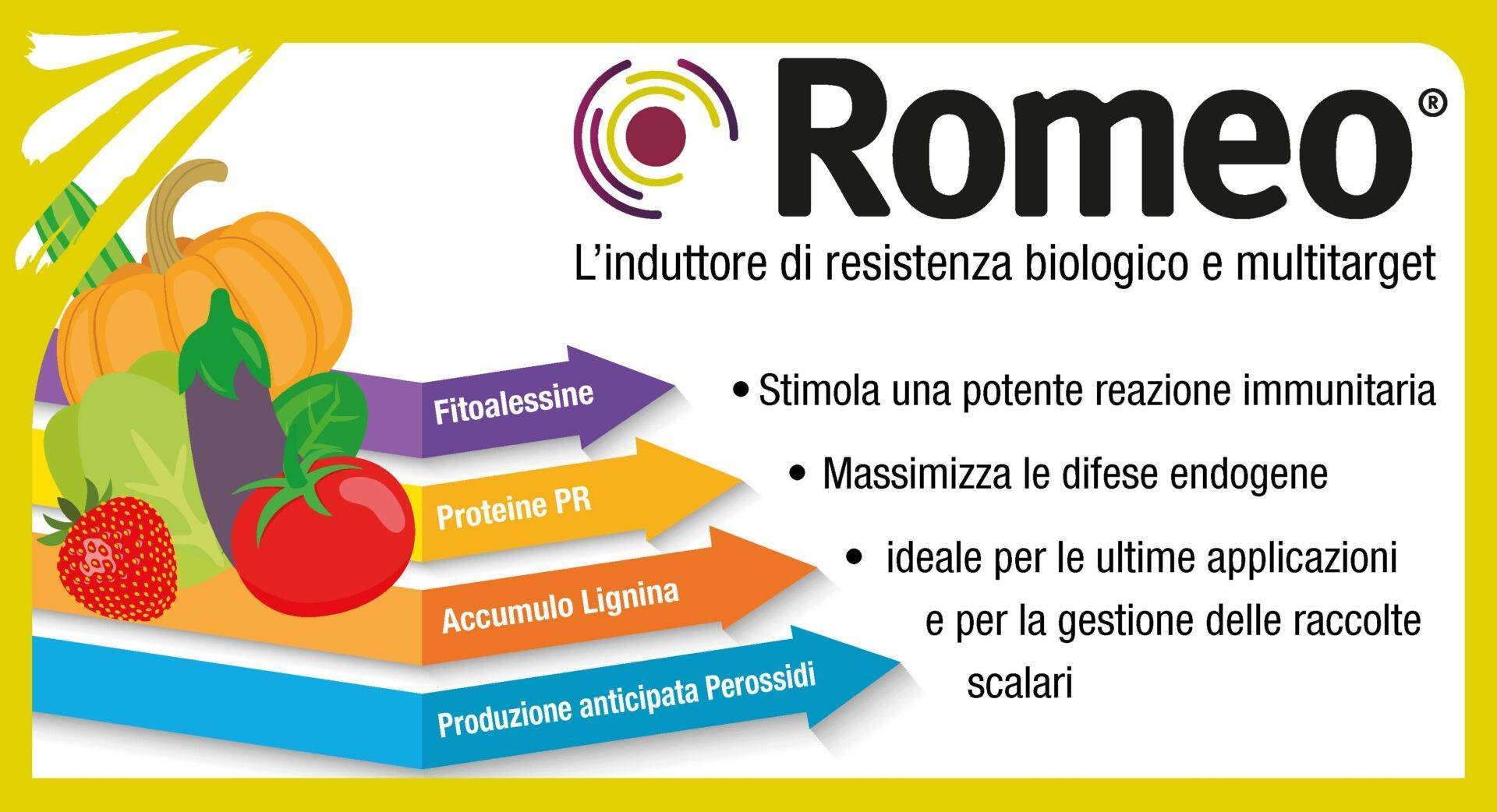 ROMEO®, arrivato sul mercato nell’Aprile del 2018, è un induttore di resistenza biologico e multitarget, caratterizzato dal basso impatto ambientale e dalla spiccata componente innovativa, in particolare nei confronti delle patologie fungine quali peronospora, muffa grigia e oidio.