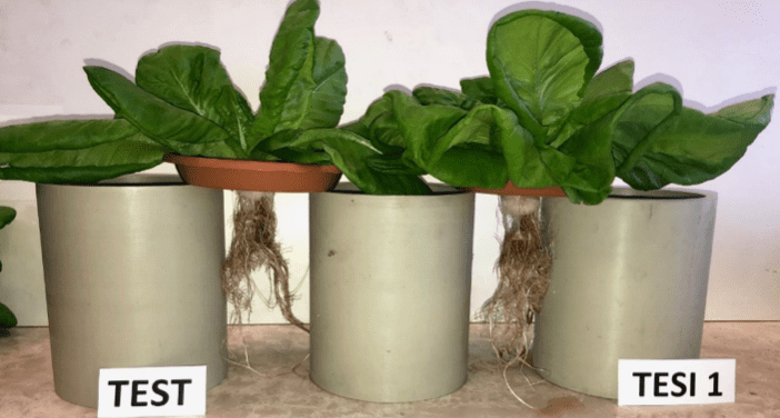 Figure 4a e b – Le piante coltivate con StimUp (tesi 1) presentano uno sviluppo fogliare e radicale estremamente più sviluppato rispetto alle piante che non hanno ricevuto il prodotto (Test).