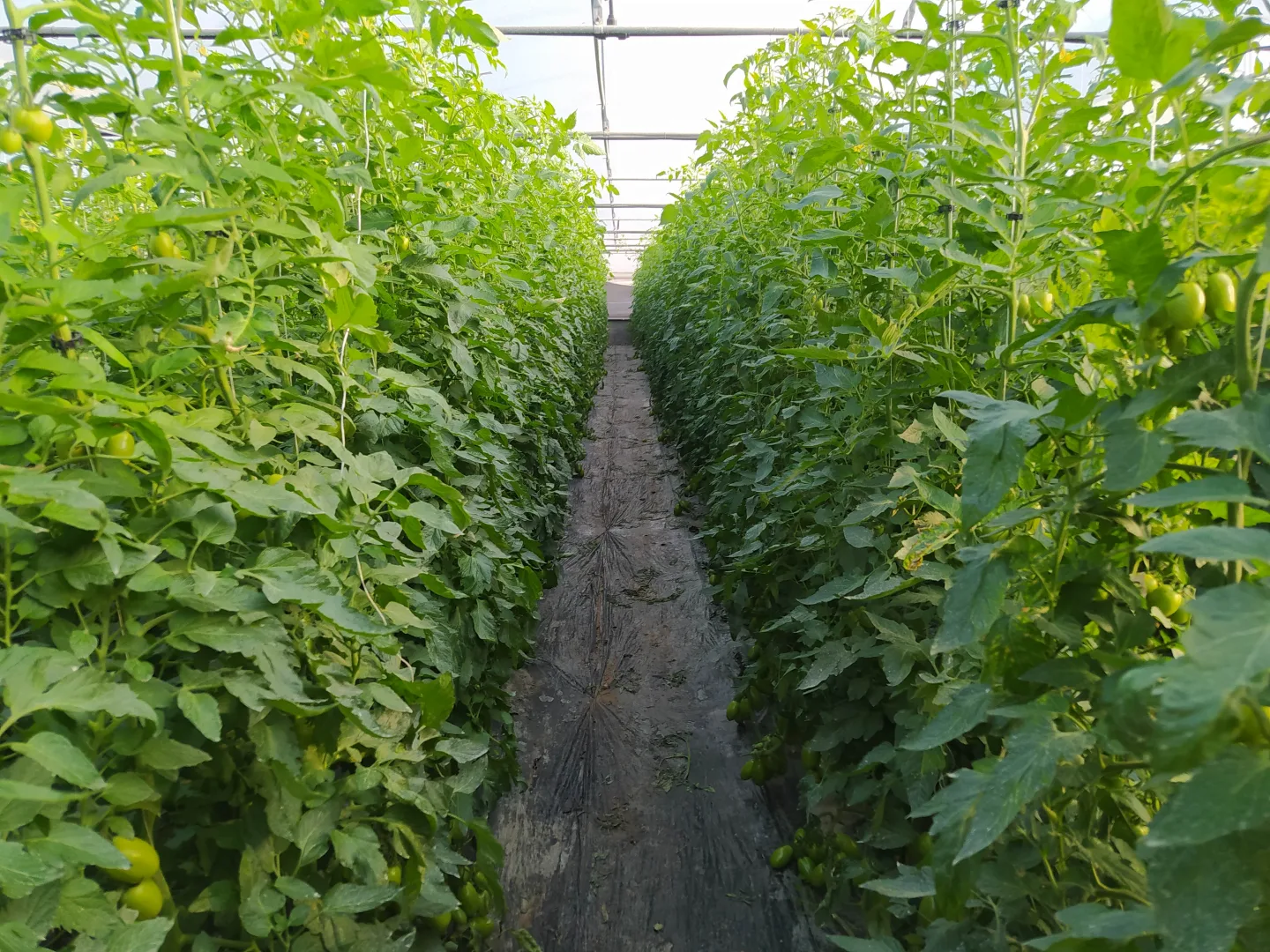 Figura 2- Piante di pomodoro verde estremamente rigogliose grazie all’azione veicolante di StimUp (Ragusa 2024)