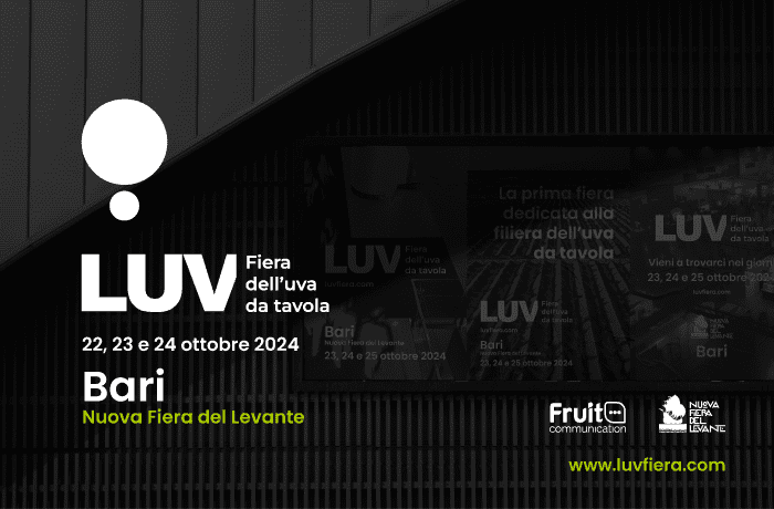 - Organizzata da Fruit Communication, società editrice di riviste e siti web dedicati all’agricoltura, e Nuova Fiera del Levante di Bari, LUV Fiera si avvale del supporto di APEO – Associazione Produttori Esportatori Ortofrutticoli, CUT – Commissione Italiana Uva da Tavola e Associazione Uva da Tavola Siciliana.