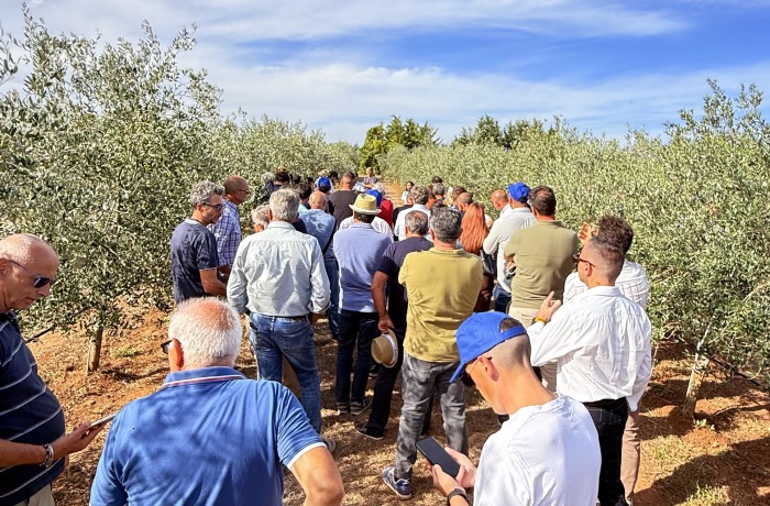 Tra i filari dei giovani impianti, che hanno fatto da sfondo all’evento, si è costruito un dialogo fitto e vivace tra tecnici, agronomi e produttori attenti, interessati a conoscere soluzioni efficaci e strumenti innovativi per restituire vigore al comparto. Difesa fitosanitaria, nutrizione, ma anche dimostrazioni pratiche delle più recenti applicazioni di agricoltura di precisione – con droni e tecnologie avanzate – hanno scandito un pomeriggio intenso, che ha dato voce a una consapevolezza comune: l’olivicoltura salentina non solo può, ma deve ripartire.