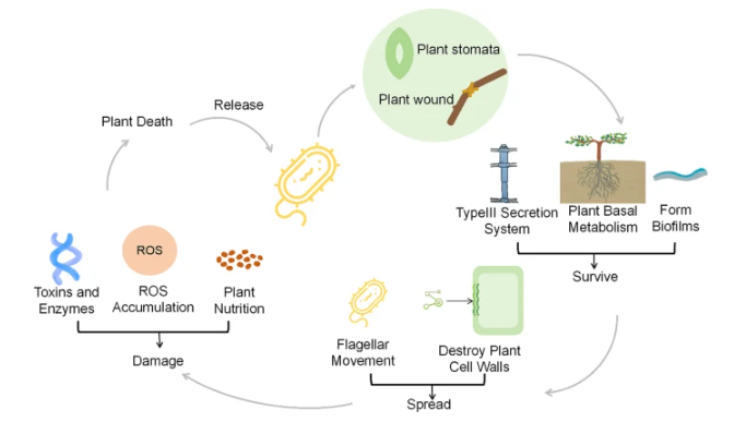 Il processo d’infezione da Psa: dall’ingresso nella pianta alla sopravvivenza, diffusione e manifestazione dei danni.