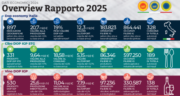 I numeri complessivi sono chiari: nel 2024 la “DOP economy” italiana raggiunge 20,7 miliardi di euro di valore alla produzione, +3,5% sull’anno precedente e oltre +25% dal 2020. Un risultato che conferma la forza del modello IG e che il Ministro dell’Agricoltura Francesco Lollobrigida ha commentato con toni netti: “I risultati della Dop economy confermano, ancora una volta, la forza e l’unicità del nostro sistema agroalimentare. Le Indicazioni Geografiche garantiscono una protezione del saper fare e vedono l’Italia leader mondiale nel numero di prodotti”. Il Ministro ha aggiunto che il made in Italy “non vuol dire solo fatto in Italia, ma buono, sano, da acquistare e da riconoscere anche attraverso questo sistema che ne certifica l’autenticità”, ricordando come la filiera IG “rappresenti un traino sempre più forte per turismo ed economia”.